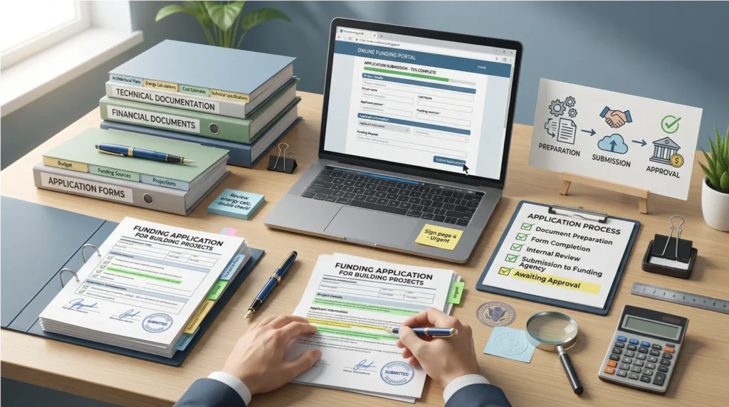 Wir stellen alle notwendigen technischen Unterlagen zusammen, füllen die Anträge korrekt sowie fristgerecht aus und begleiten den gesamten Prozess von der Einreichung bis zur Bewilligung durch die Förderstelle.