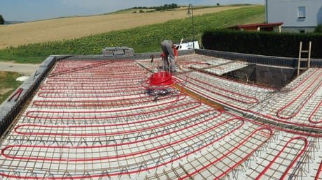Der intelligente Einsatz des Energiespeichers Beton ermöglicht den zeitlich unabhängigen Einsatz von Wärmepumpen für die Einlagerung thermischer Energie in die mit einem Leitungssystem versehenen Bauteile aus Beton. Mit dieser Vorgabe kann elektrische Energie – in diesem Fall Windstrom – gezielt und vor allem dann genutzt werden, wenn sie im Überschuss vorhanden oder anderweitig nicht nutzbar ist. Bei einem entsprechend wärmegedämmten Gebäude reicht die in den Betonbauteilen eingelagerte Wärme selbst bei Außentemperaturen von 20° unter dem Gefrierpunkt aus, einen Zeitraum von mindestens drei Tagen ohne Energiezufuhr von außen ohne merkbaren Komfortverlust für die Bewohner zu überbrücken.
